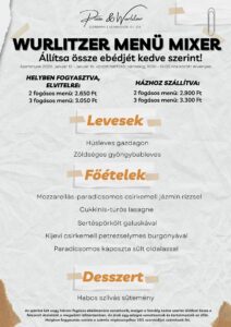 Január 12 – 16. között az alábbi WURLITZER MENÜ MIXER étlappal várjuk Önöket hétköznap 11:00 – 14:00 óra között.